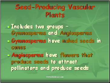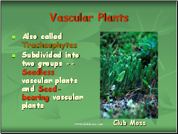 Subdivided into two groups -- Seedless vascular plants and Seed-bearing vascular plants