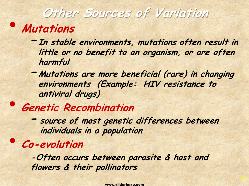 Recognizes that SPECIATION usually is due to the gradual accumulation of small genetic changes