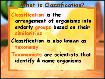 Classification is the arrangement of organisms into orderly groups based on their similarities
