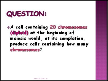 A cell containing 20 chromosomes (diploid) at the beginning of meiosis would, at its completion, produce cells containing how many chromosomes?