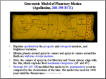 Geocentric Model of Planetary Motion (Apollonius, 260-190 BCE)