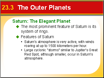 • Large cyclonic “storms” similar to Jupiter’s Great Red Spot, although smaller, occur in Saturn’s atmosphere.
