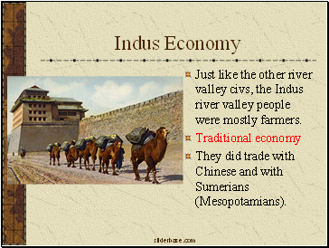 Just like the other river valley civs, the Indus river valley people were mostly farmers.