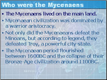 Not only did the Mycenaeans defeat the Minoans, but according to legend, they defeated Troy, a powerful city-state.