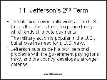 Jefferson puts aside his own personal problems with the government paying for a navy, and the country develops a stronger defense.