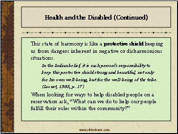 When looking for ways to help disabled people on a reservation ask, “What can we do to help our people fulfill their roles within the community?”