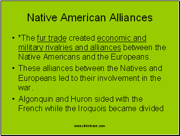 These alliances between the Natives and Europeans led to their involvement in the war.
