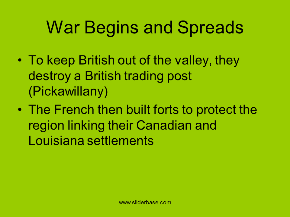 Late 1600’s – France had claimed the Ohio River Valley, the Mississippi River Valley, and the great lake region.