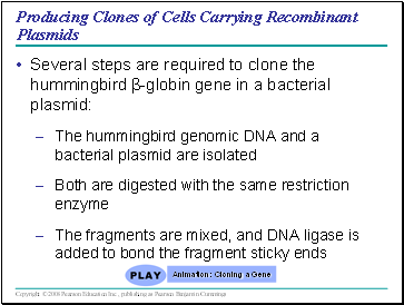 Several steps are required to clone the hummingbird β-globin gene in a bacterial plasmid: