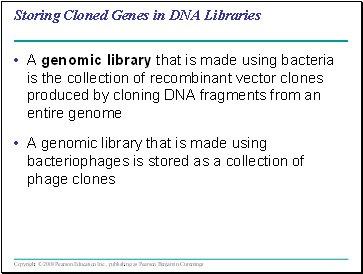A genomic library that is made using bacteria is the collection of recombinant vector clones produced by cloning DNA fragments from an entire genome