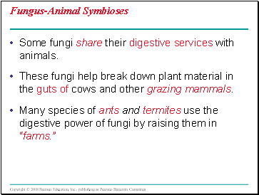 Many species of ants and termites use the digestive power of fungi by raising them in “farms.”
