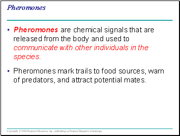 Pheromones mark trails to food sources, warn of predators, and attract potential mates.