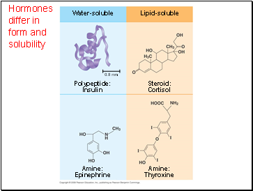 The solubility of a hormone correlates with the location of receptors inside or on the surface of target cells.