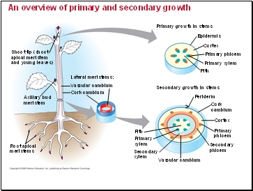 The primary growth of roots produces the epidermis, ground tissue, and vascular tissue.