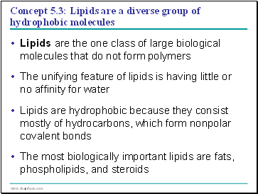 Concept 5.3: Lipids are a diverse group of hydrophobic molecules