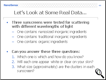 Three sunscreens were tested for scattering with different wavelengths of light