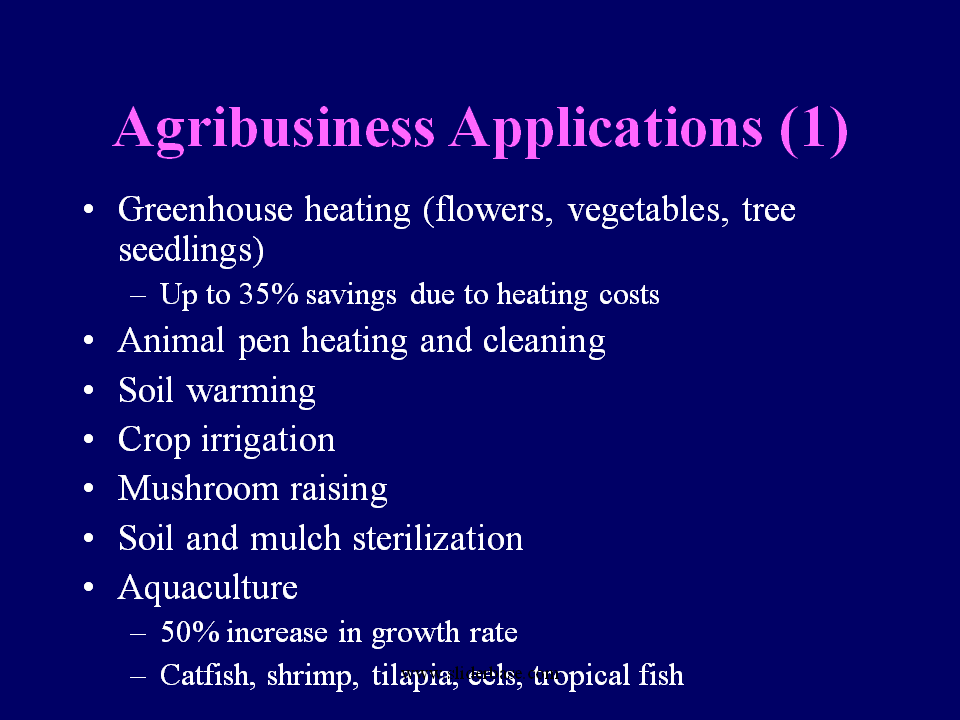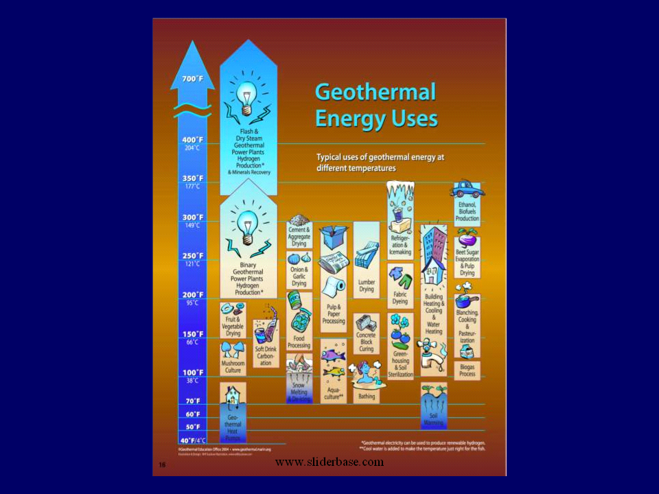 Largest use: geothermal (ground-source) heat pumps used for both heating and cooling