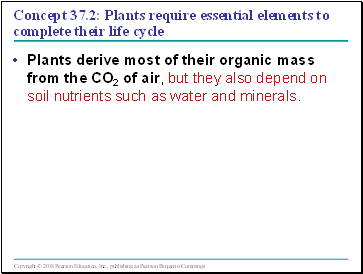 Plants derive most of their organic mass from the CO2 of air, but they also depend on soil nutrients such as water and minerals.