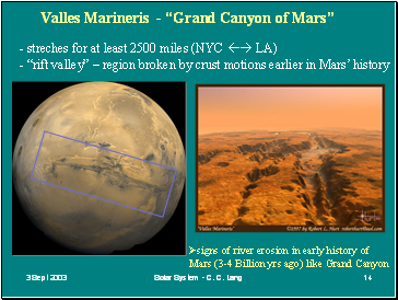 signs of river erosion in early history of Mars (3-4 Billion yrs ago) like Grand Canyon