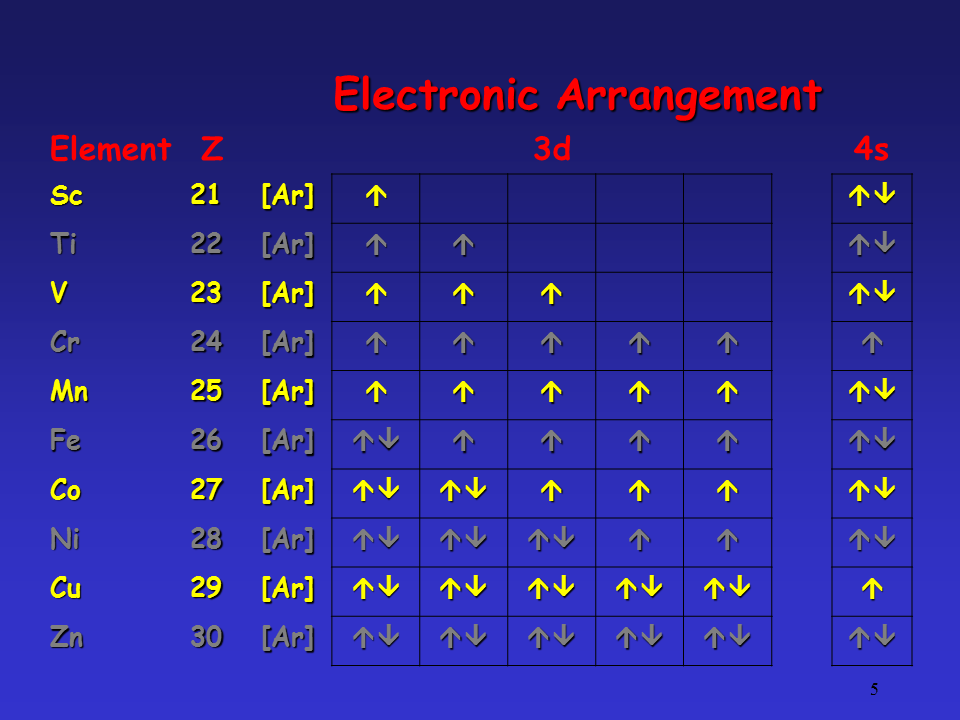 Gradual increase from Hi(1) to Hi(4) as removing 4s then 3d e-