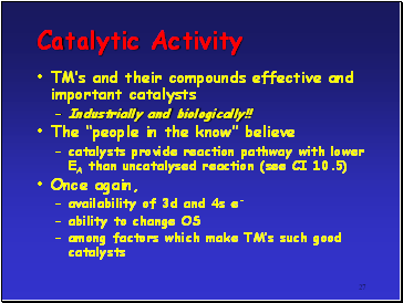 use the 3d and 4s e- of atoms on metal surface to from weak bonds to the reactants.