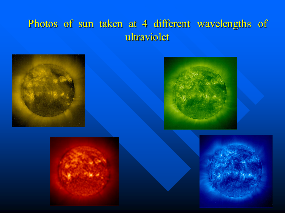 Photos of sun taken at 4 different wavelengths of ultraviolet