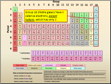Group 18 (Noble gases) have 8 valence electrons, except helium, which has only 2