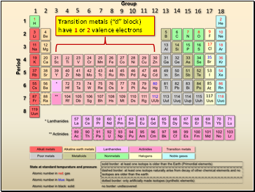 Transition metals (“d” block) have 1 or 2 valence electrons