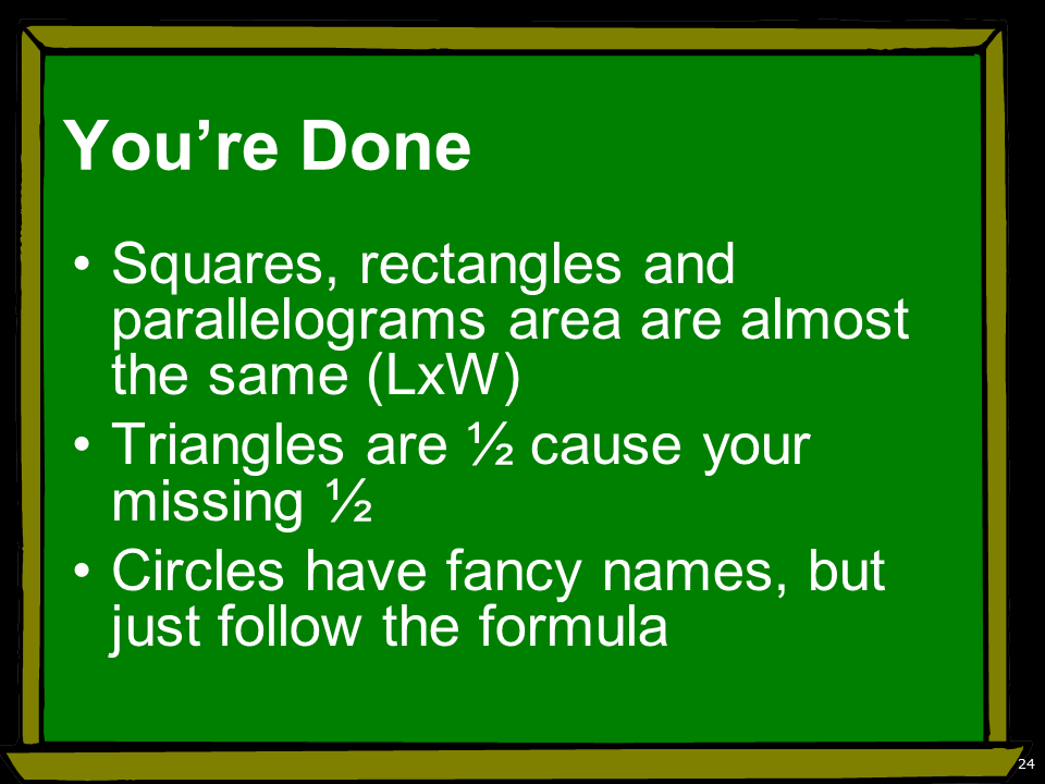 No problem…use the formula for squares/rectangles (only!)