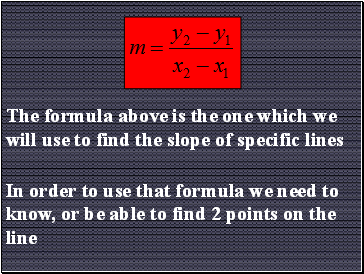 The formula above is the one which we will use to find the slope of specific lines