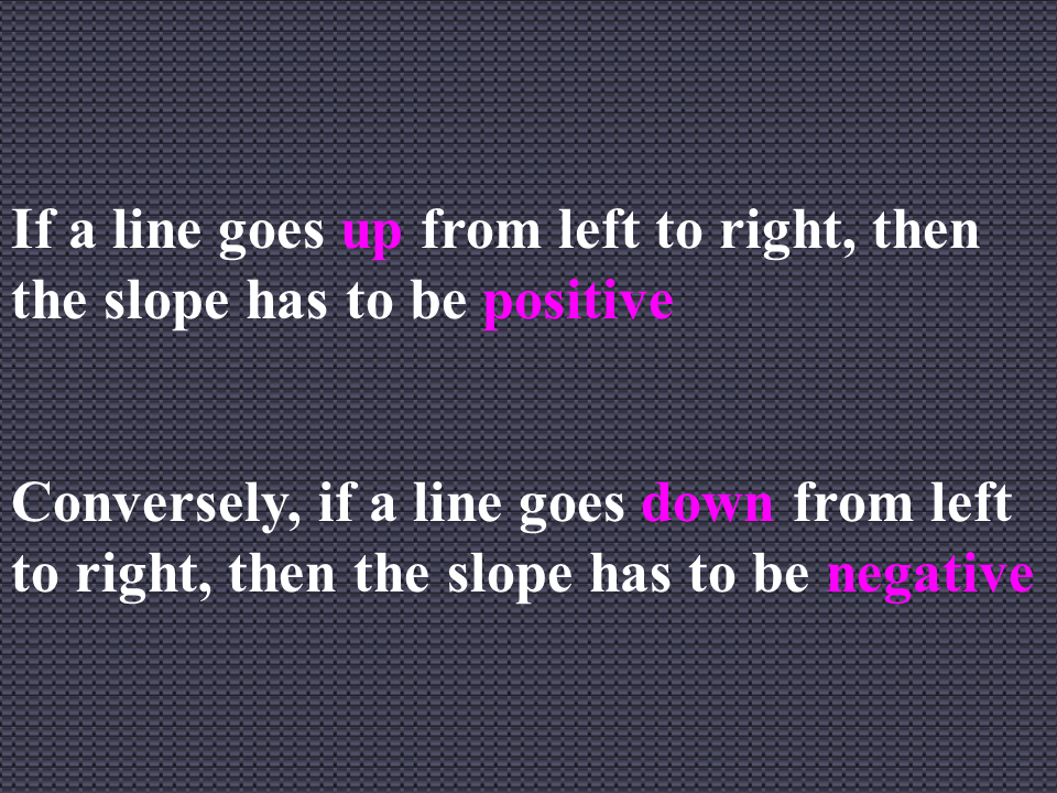 Conversely, if a line goes down from left to right, then the slope has to be negative