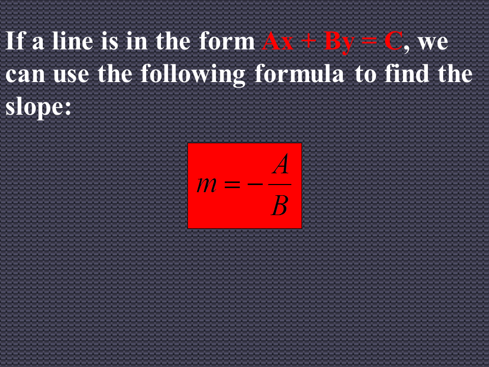 If a line is in the form Ax + By = C, we can use the following formula to find the slope: