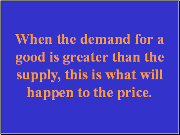 When the demand for a good is greater than the supply, this is what will happen to the price.