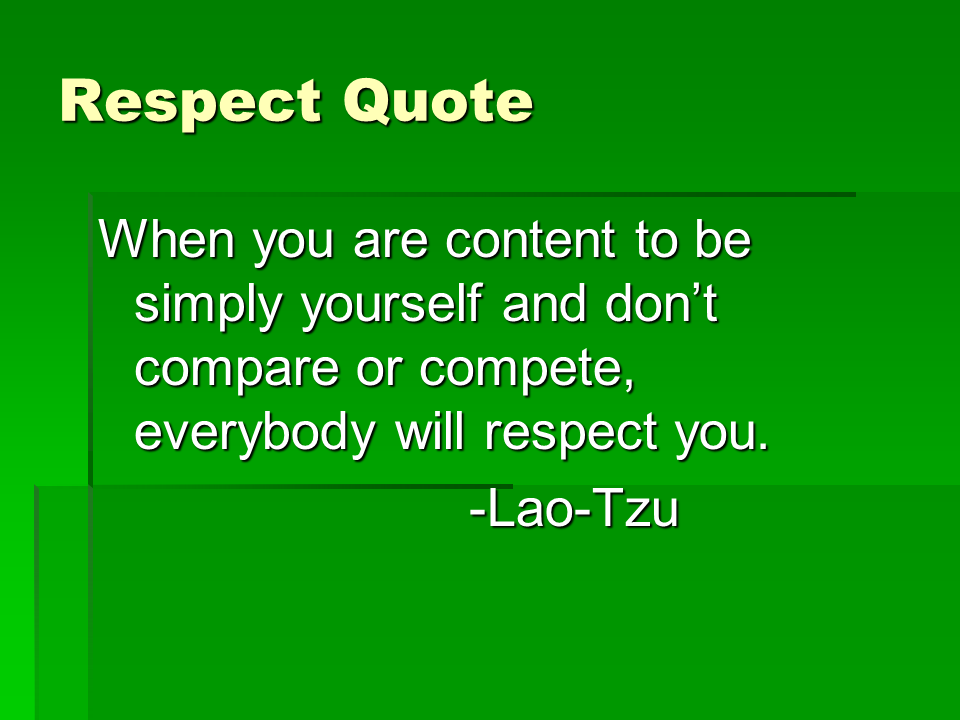 When you are content to be simply yourself and don’t compare or compete, everybody will respect you.