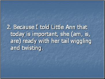 2. Because I told Little Ann that today is important, she (am, is, are) ready with her tail wiggling and twisting.