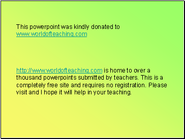 http://www.worldofteaching.com is home to over a thousand powerpoints submitted by teachers. This is a completely free site and requires no registration. Please visit and I hope it will help in your teaching.