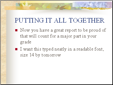 Now you have a great report to be proud of that will count for a major part in your grade