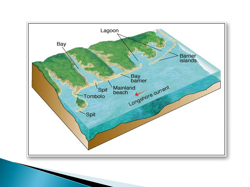 longshore transport (littoral drift) - the displacement of sediment down the shore (parallel to the shore).
