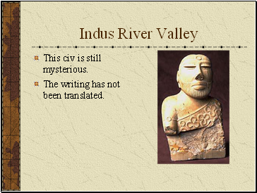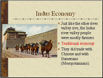 Just like the other river valley civs, the Indus river valley people were mostly farmers.