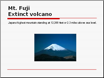 Japans highest mountain standing at 12,388 feet or 2.3 miles above sea level.