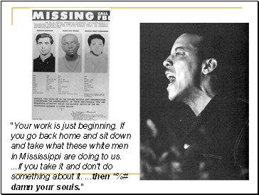 "Your work is just beginning. If you go back home and sit down and take what these white men in Mississippi are doing to us. .if you take it and don't do something about it. .then *%# damn your souls."