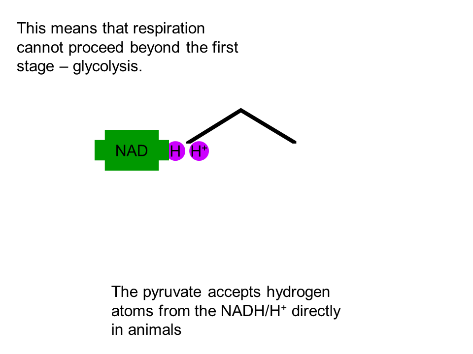This means that respiration cannot proceed beyond the first stage glycolysis.