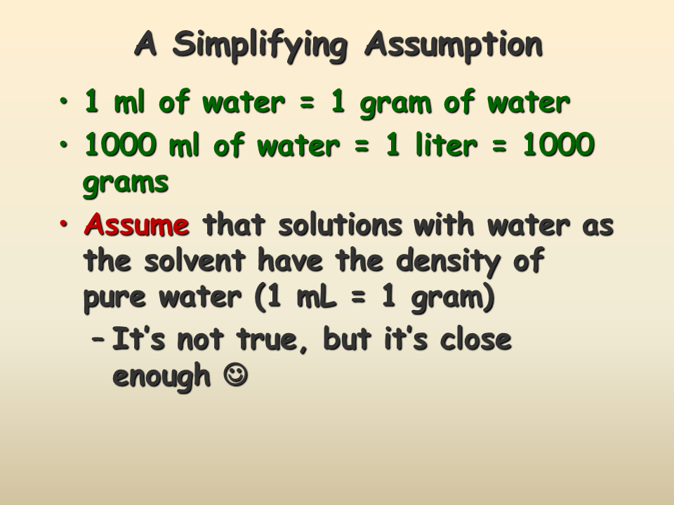 Assume that solutions with water as the solvent have the density of pure water (1 mL = 1 gram)