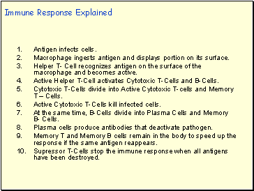 Supressor T-Cells stop the immune response when all antigens have been destroyed.