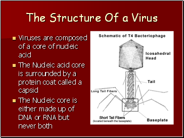 The Nucleic acid core is surrounded by a protein coat called a capsid