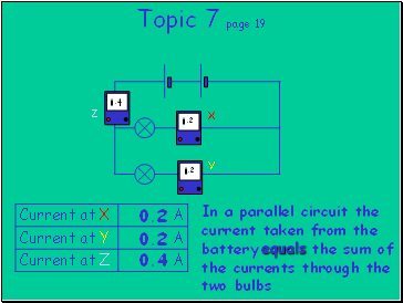 In a parallel circuit the current taken from the battery the sum of the currents through the two bulbs