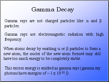 This excess energy is emitted as gamma rays (gamma ray photons have energies of ~ 1 x 10-12 J).