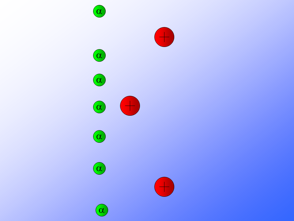 In 1909, Rutherford used alpha particles to investigate the composition of gold foil (i.e. to explain the model of an atom).
