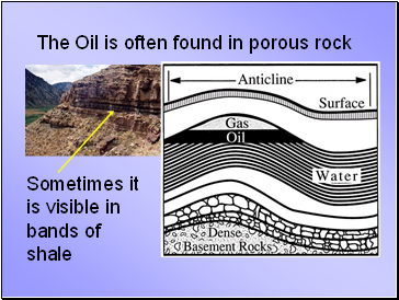 Today, the Crude Oil lies covered by layers of sedimentary rock. We have to drill down through the rock to reach rock formations which contain Oil and Gas deposits. They occur in bands of porous (spongy) rock.