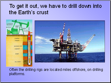 Often the drilling rigs are located miles offshore, on drilling platforms.